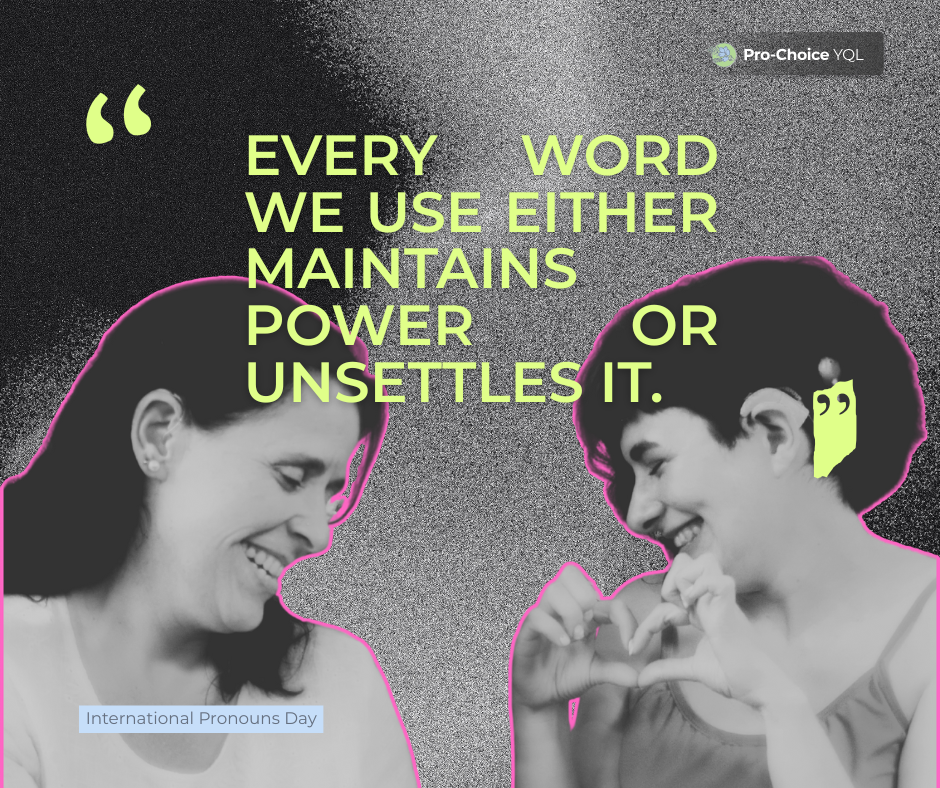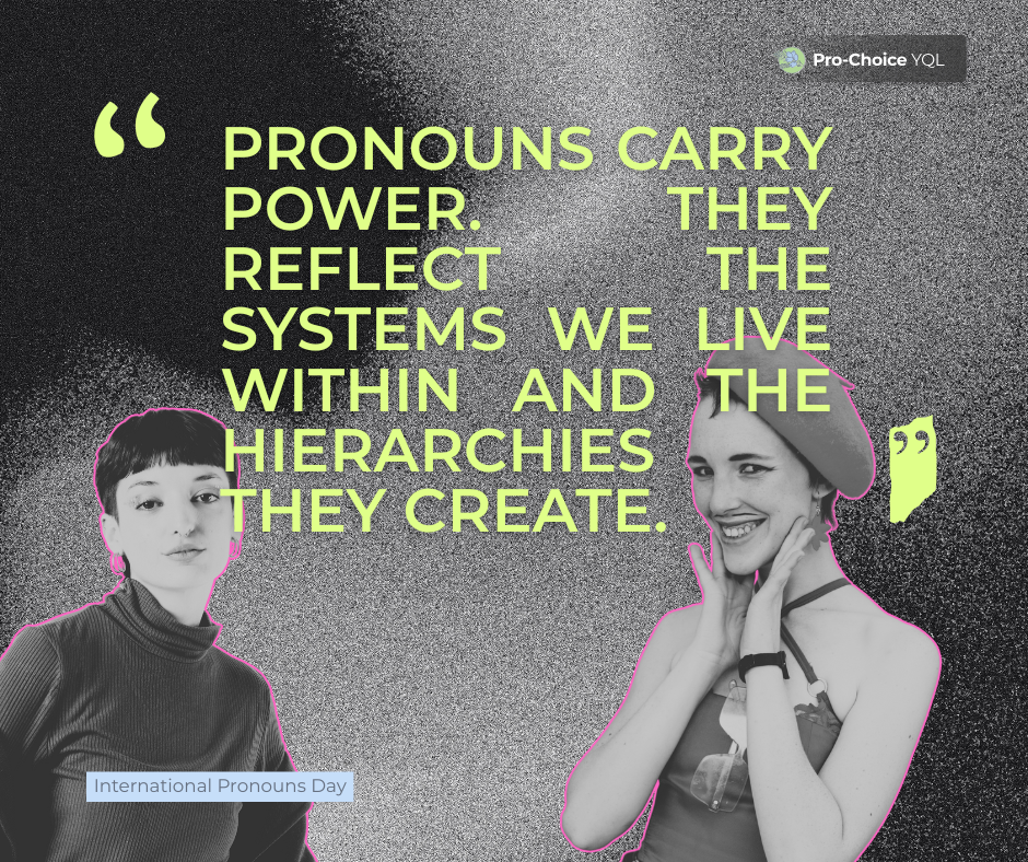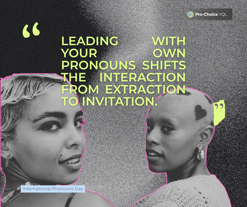 Every October, International Pronouns Day invites us to reflect on the connection between language and the systems we navigate. For Pro-Choice YQL, this reflection is more than symbolic. Our work has always been about autonomy — the right to define and speak for ourselves, to make choices about our bodies, and to live without coercion or control. Pronouns are one way that autonomy is expressed and respected. They remind us that identity, and choice, belongs to the individual.